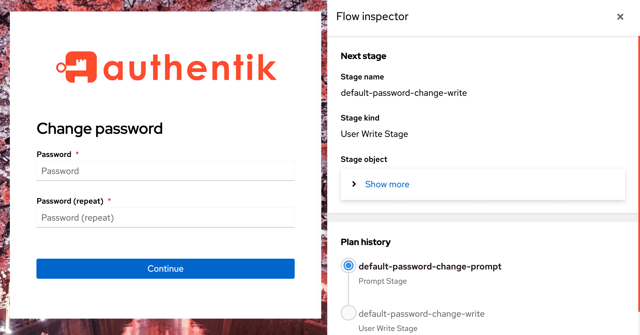 Starting with authentik 2025.2, for users with appropriate permissions to access the inspector a button is shown in the top right of the default flow executor which opens the flow inspector.